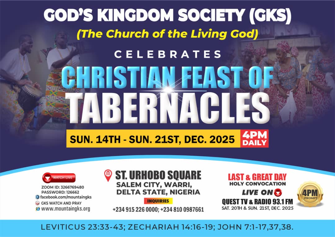 Christian Feast Of Tabernacles * Date: Sunday, December 14th, 2025 - Sunday, December 21th, 2025 * Venue: ST Urhobo Square, Salem City Warri, Delta State, Nigeria